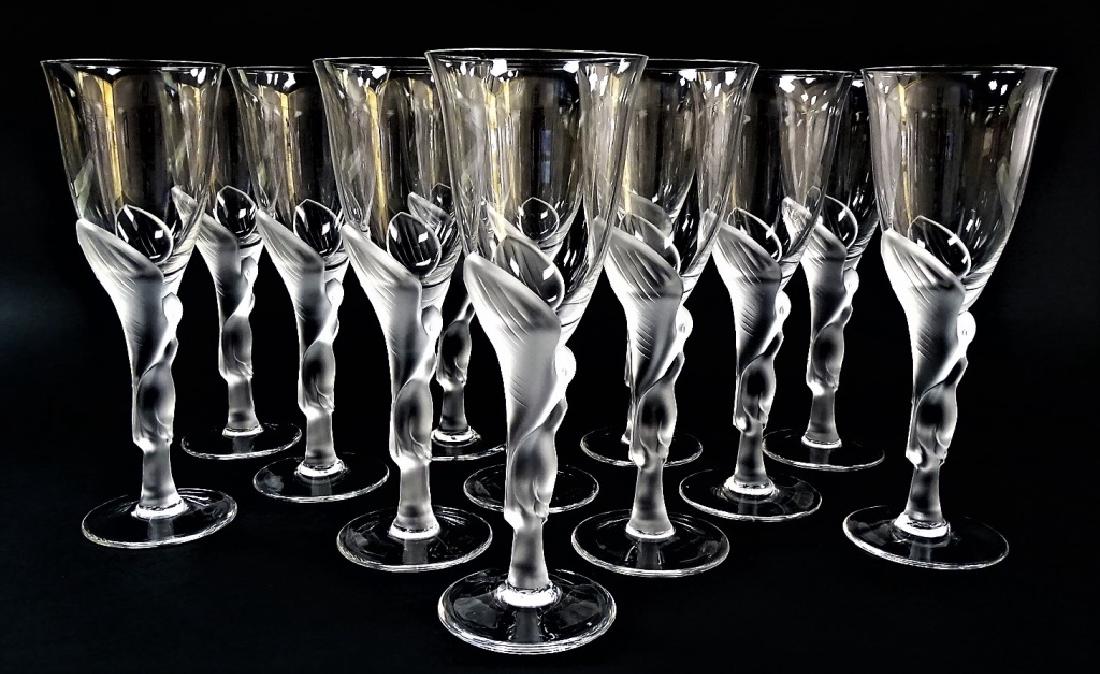 12 FABERGE KISSING DOVES WINE FLUTE GLASSES